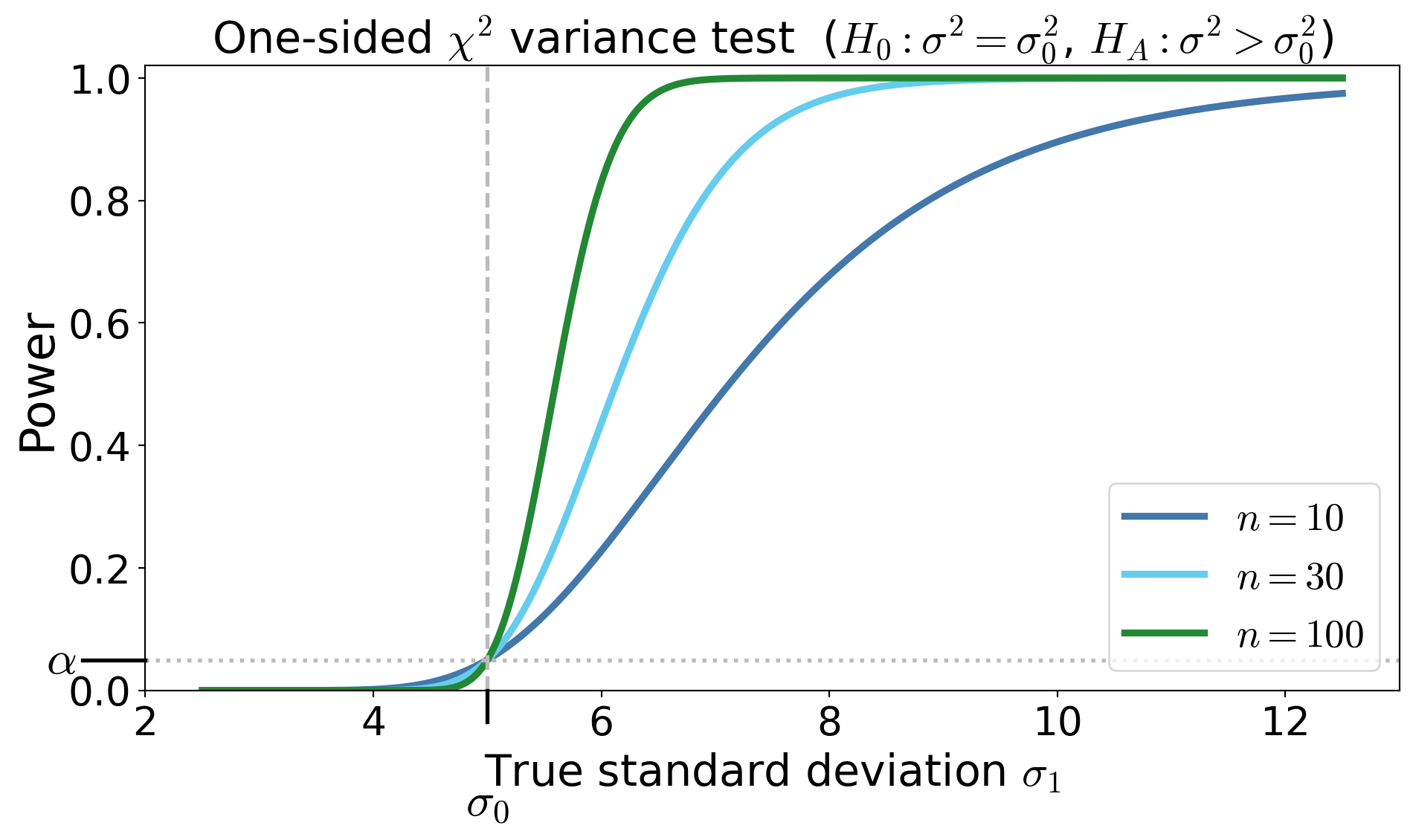 T_n(\vX) > \chi^2_{n-1,\alpha}\mid \sigma = \sigma_1