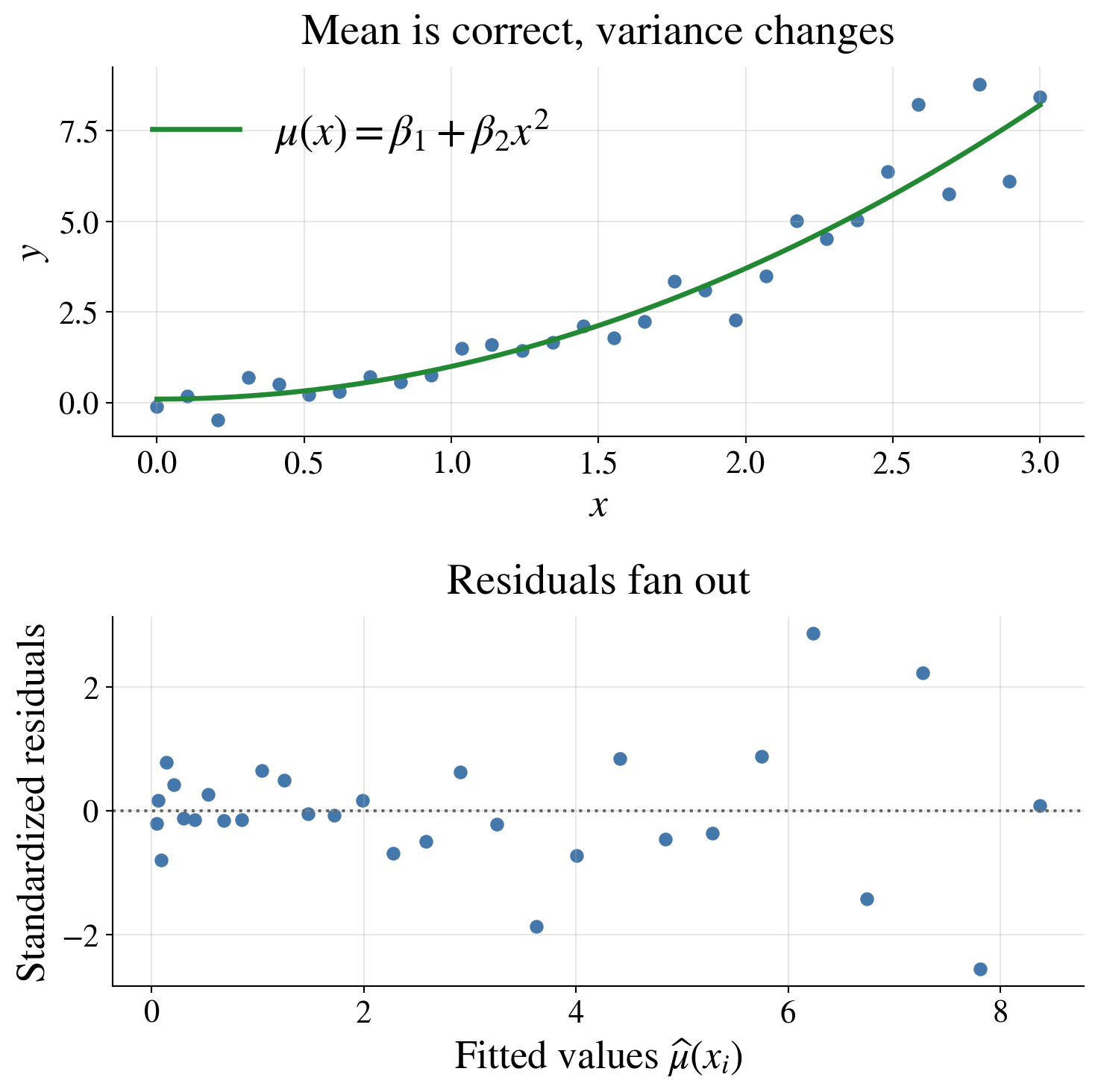 Model: \(Y = \underbrace{\vx^\top \vbeta}_{\mu(\vx)} + \varepsilon \quad\) with \(\Ex(\varepsilon)=0\), \(\var(\varepsilon)=\sigma^2\)